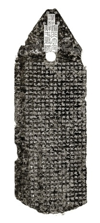 本次展览的核心展品《汉故雁门太守鲜于君碑》,便是东汉圭首碑的典型代表:上锐下方的圭形碑首保留着早期“碑穿”遗制,额部篆书碑名两侧刻青龙、白虎,阴面饰朱雀,不见玄武。