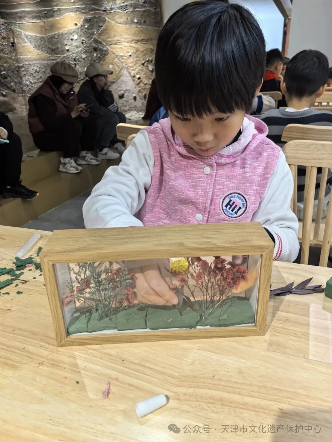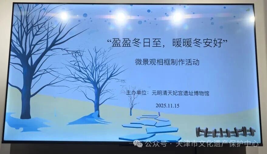 11 月 15 日,在元明清天妃宫遗址博物馆内开展了盈盈冬日至,暖暖冬安好—— 微景观相框(冬景)制作活动。从普通装饰到定制冬景微景观,这不仅是手工形式的转变,更是对冬日意趣的捕捉与生活暖意的留存。制作环节中,大家认真挑选迷你松枝、雪花摆件等材料,逐层布置相框里的 “冬日小世界”,用巧思勾勒冬的静谧。当一个个精致的冬景微景观完成,暖光下的小场景格外灵动,大家脸上满是欢喜,仿佛将冬日美好定格手中,添了份别样温情。