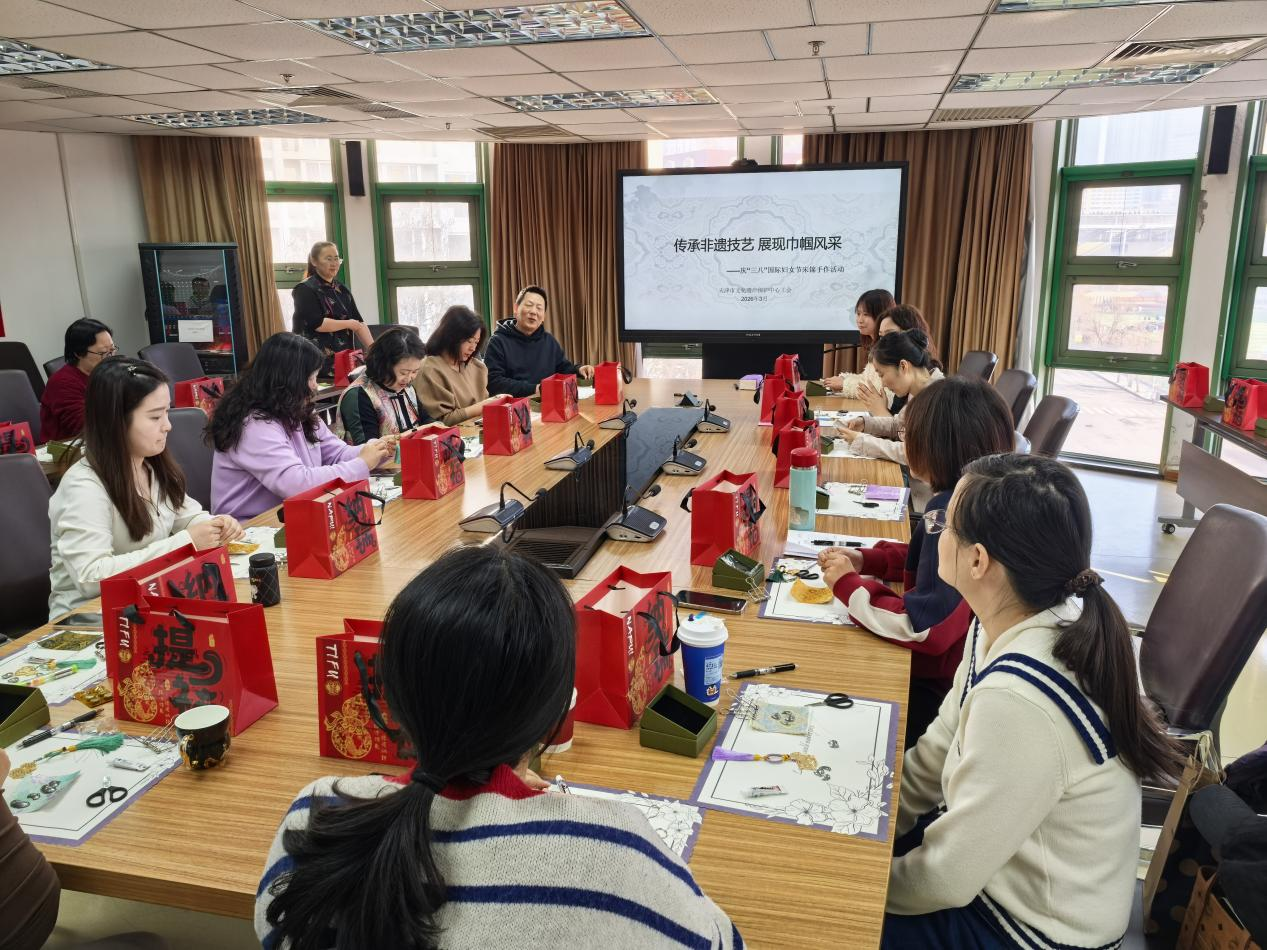 在第116个“三八”国际妇女节来临之际,天津市文化遗产保护中心工会举办非遗宋锦压襟挂件制作体验活动。活动旨在丰富女职工的精神文化生活,传承中华传统技艺,展现女职工的良好精神风貌。