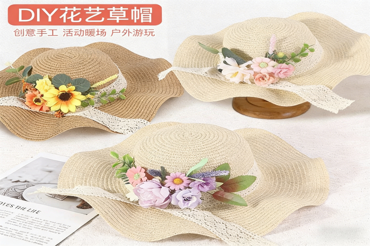初夏风暖,防晒与美学兼得。绢花色彩艳丽、经久不衰,将其点缀于草帽之上,既能遮挡烈日,又能彰显个性与雅致。本次活动带你亲手制作绢花草帽,把夏日繁花戴在头上,解锁专属清凉与浪漫。