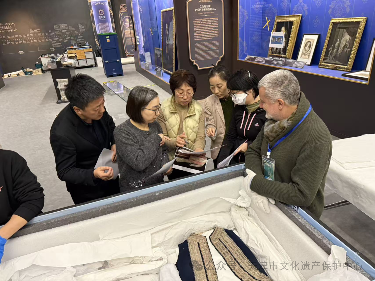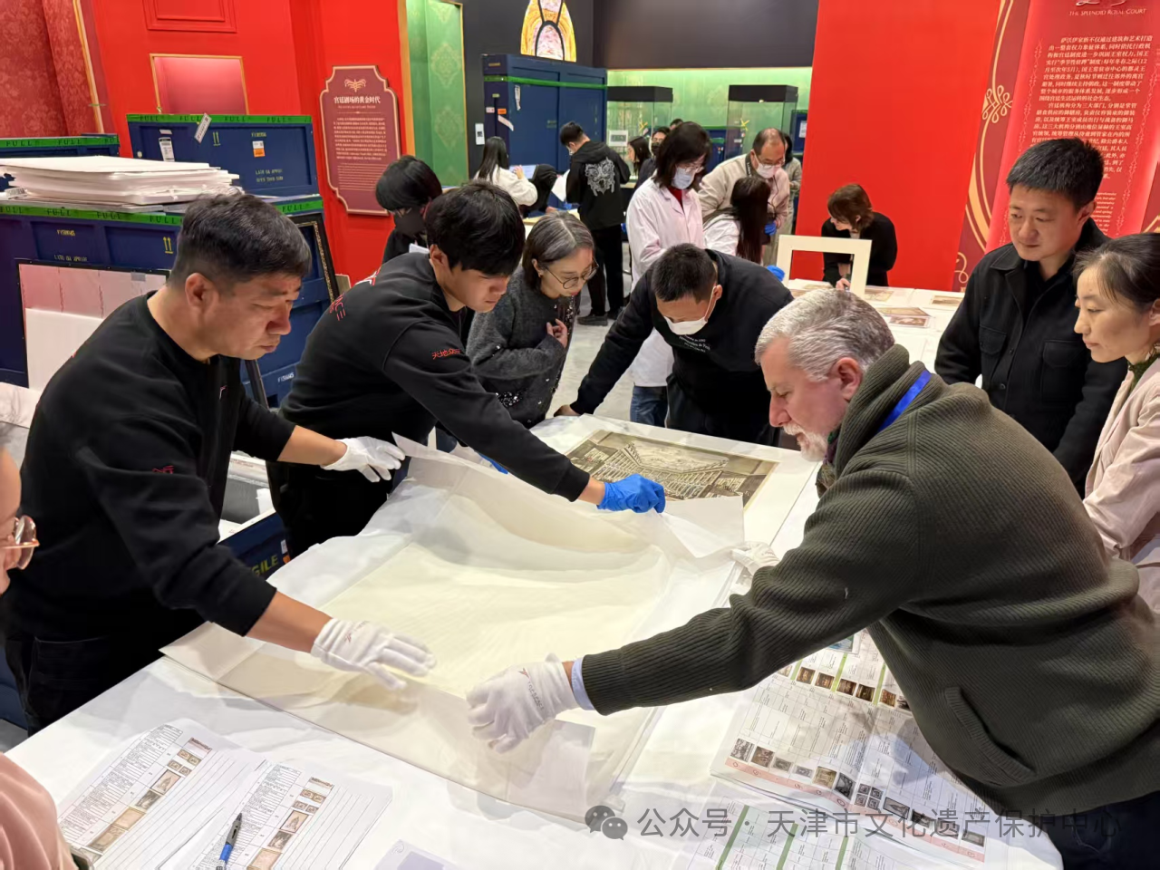 在审核过程中,天津管理处以《中华人民共和国文物保护法》及《文物进出境审核管理办法》为工作依据,与天津海关共同开箱查验,做好每件文物的进境审核登记,逐件核查并粘贴文物临时进境标识,确保展览的顺利开展。
